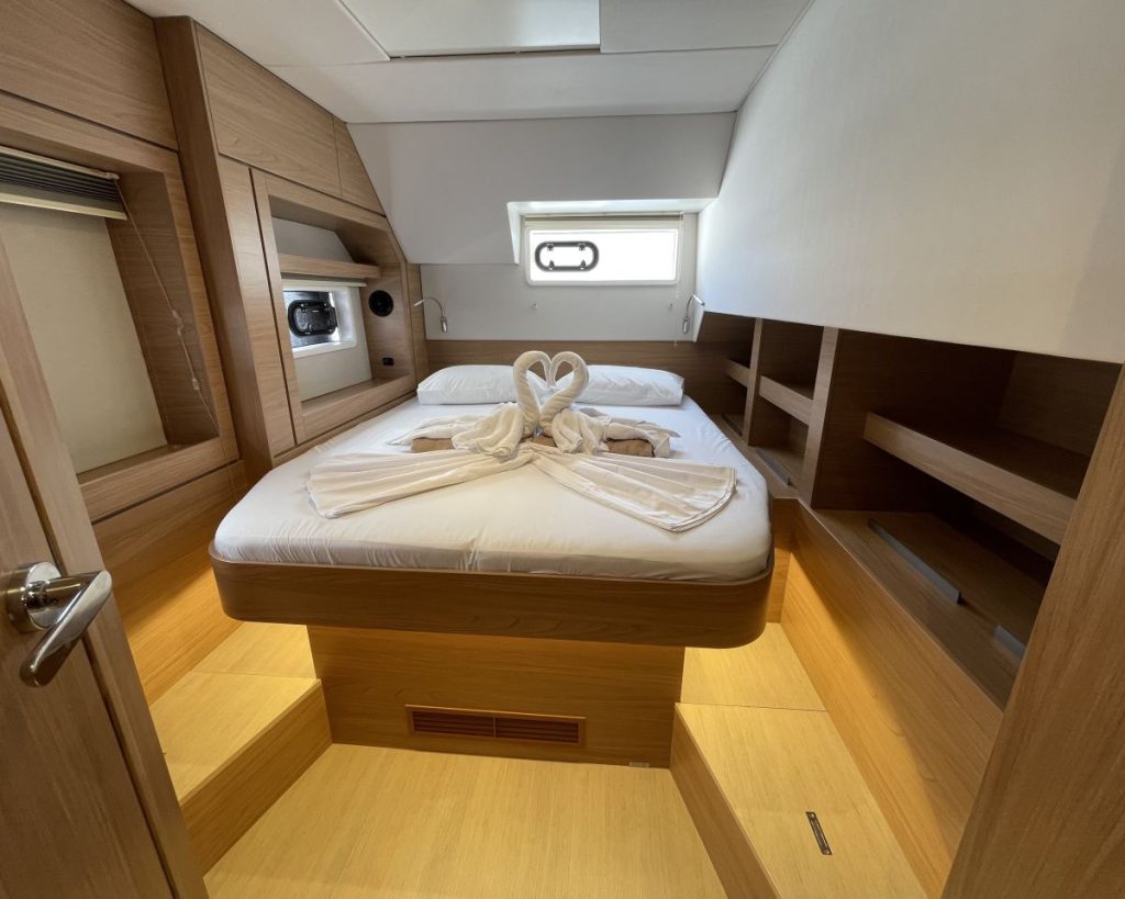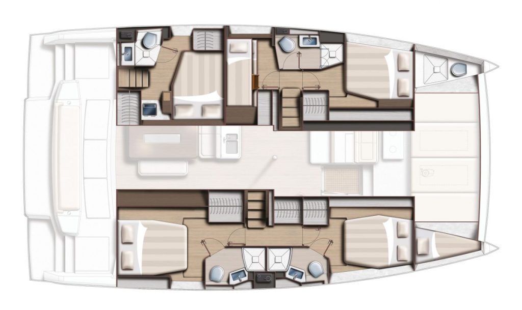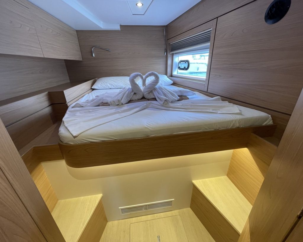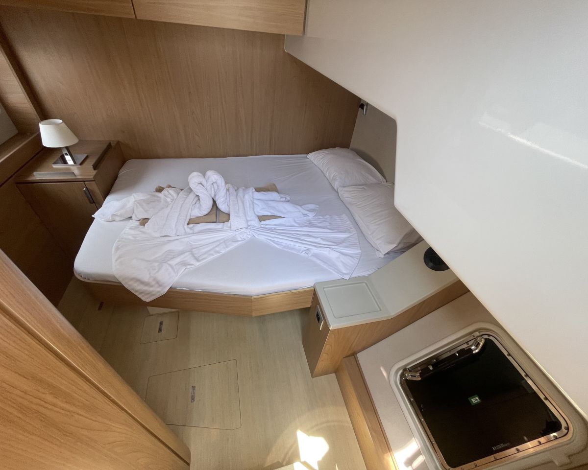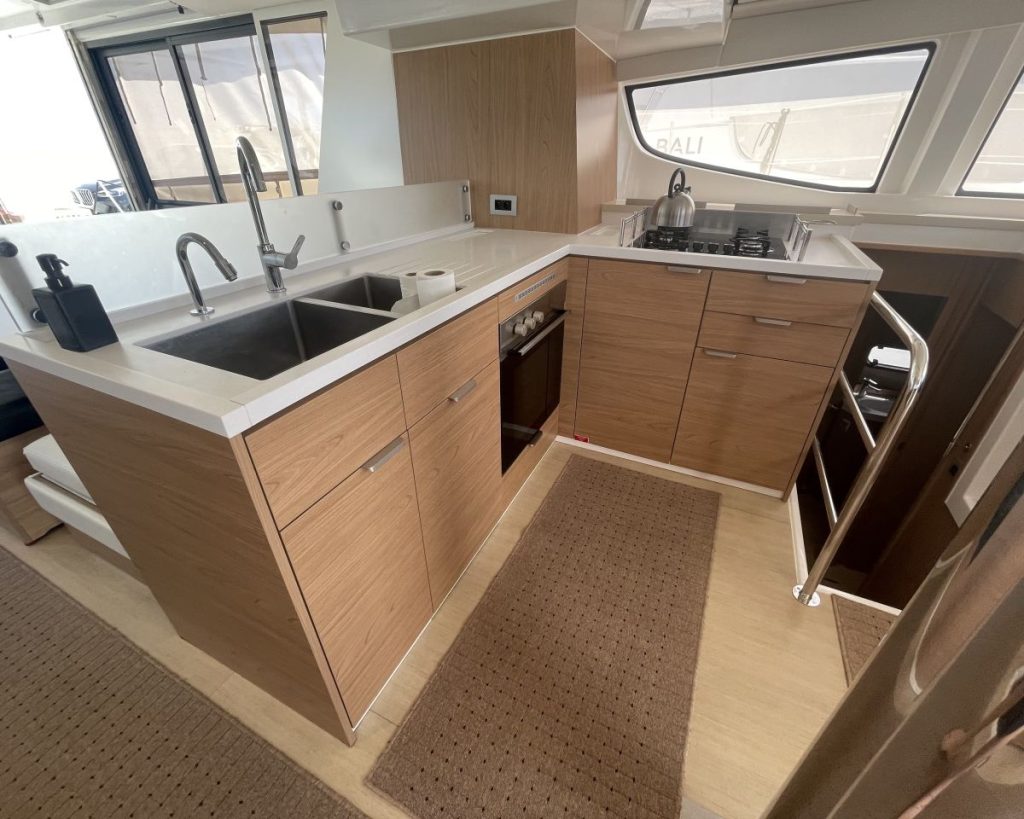 Accommodating up to seven cabins, 5 guest cabins – 4 heads + 1 Crew cabin-1 head, the Bali 4.6 offers ample spacefor relaxation and privacy, making it perfect for family trips or entertaining guests. The thoughtful layout maximizescomfort, allowing you to enjoy long voyages in style. The Bali 4.6 combines elegance with functionality, making it anexceptional choice for those seeking a versatile and spacious sailing vessel.