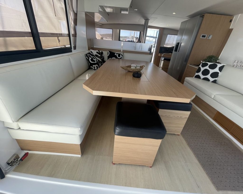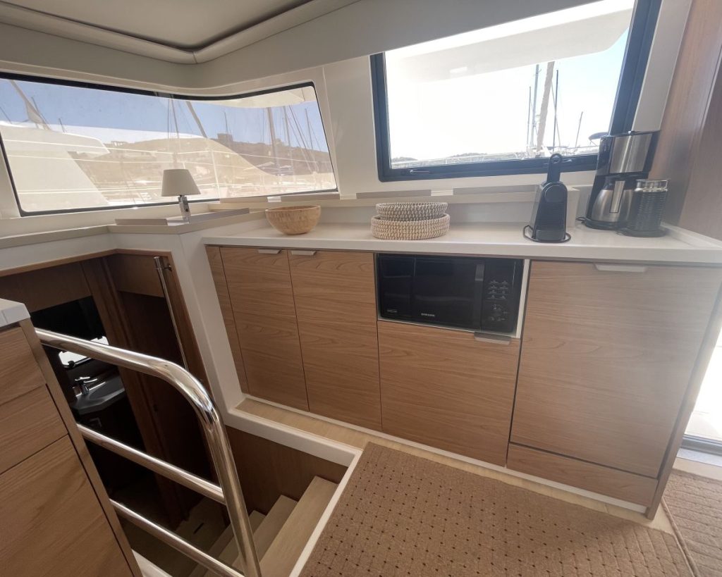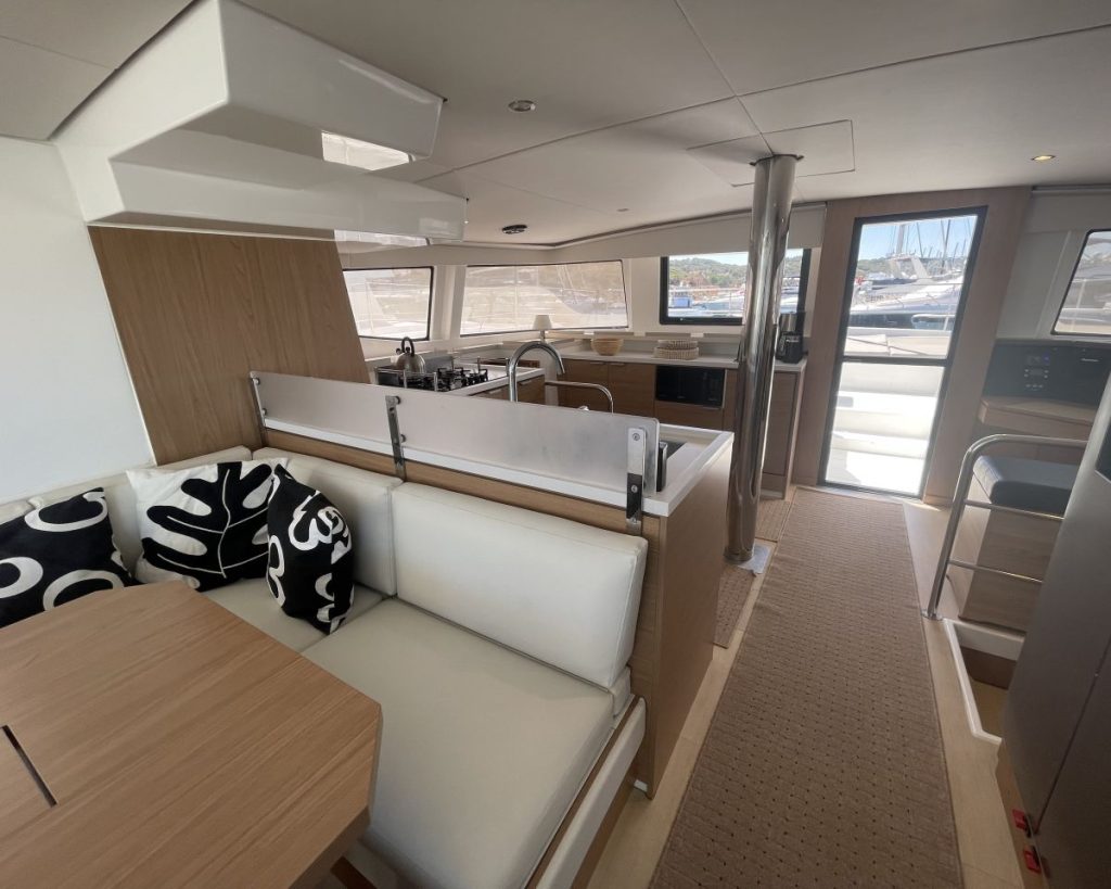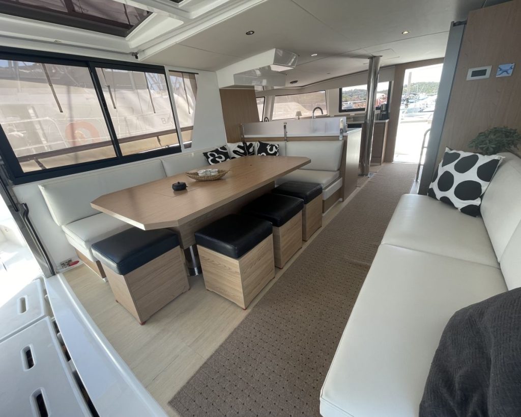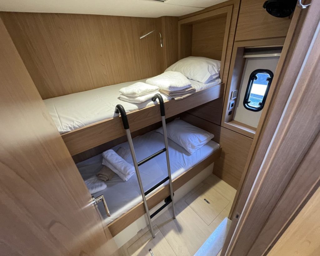Accommodating up to seven cabins, 5 guest cabins – 4 heads + 1 Crew cabin-1 head, the Bali 4.6 offers ample spacefor relaxation and privacy, making it perfect for family trips or entertaining guests. The thoughtful layout maximizescomfort, allowing you to enjoy long voyages in style. The Bali 4.6 combines elegance with functionality, making it anexceptional choice for those seeking a versatile and spacious sailing vessel.