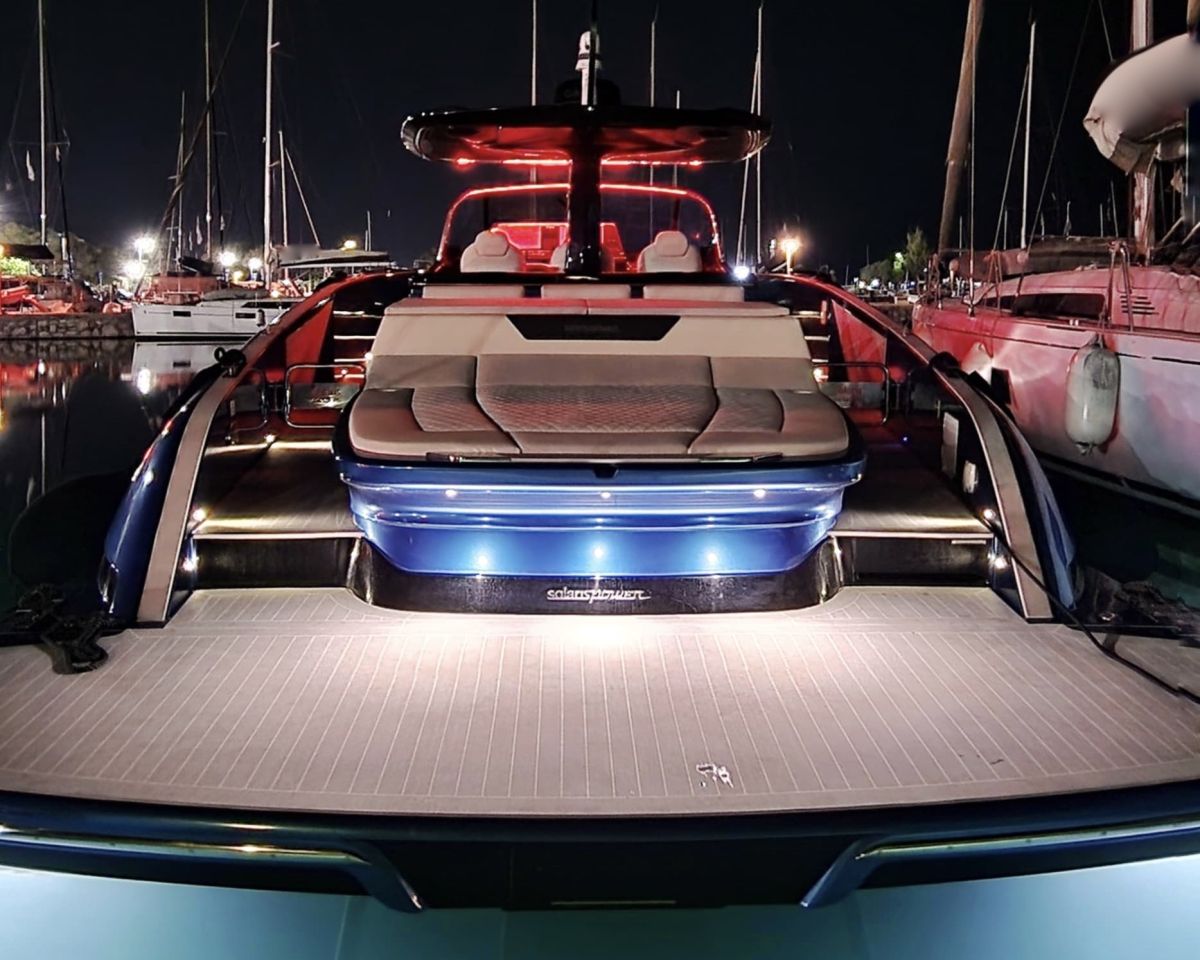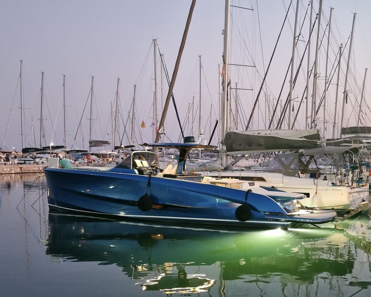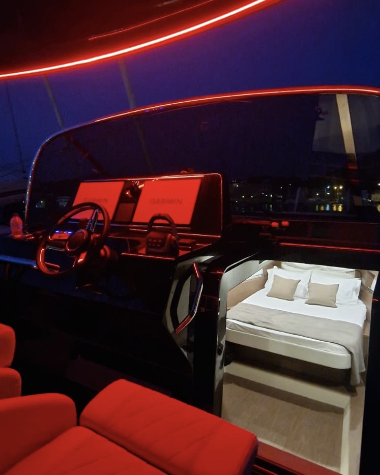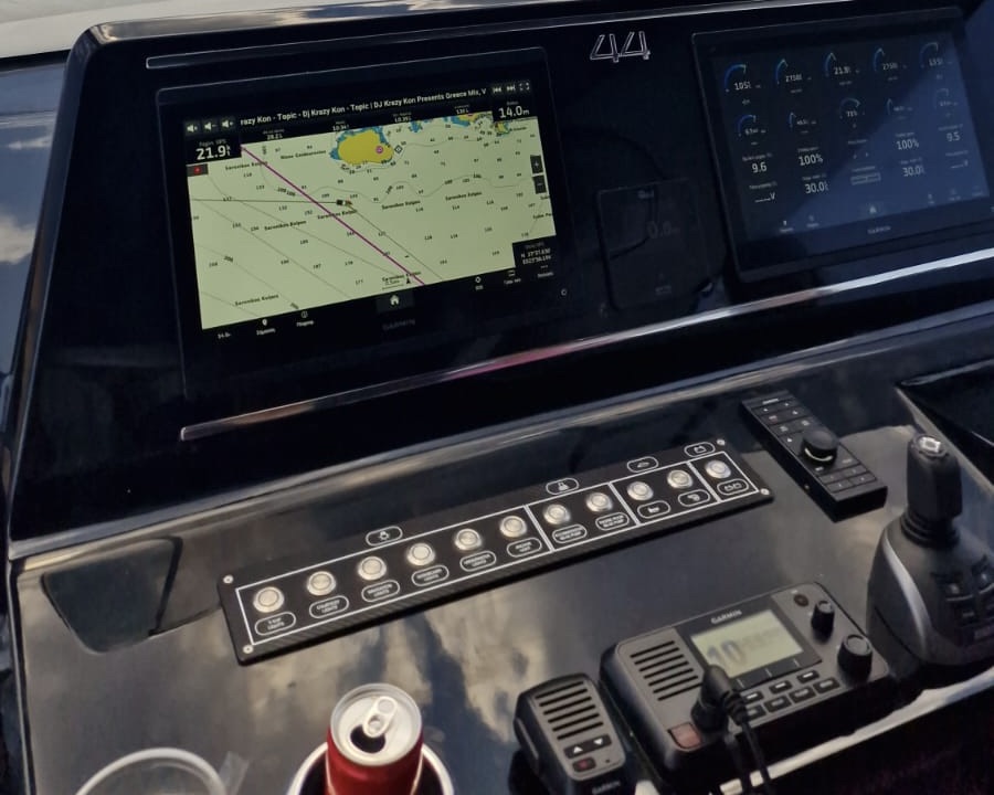 Water heater / Autotrim /water tank 200lt / fuel tank 1200lt / Garmin interface 2X 18″ screens / Garmin radar / Garmin depth sensor / garmin active captain/ Besenzzoni hydraulic passarela 3 positions with steps / inverter Α/C / Watermaker 220lt/hr / Generator Fischer Panda / IPS-GPS Positioning and position keeping system for easy docking IPS/ Joystick / Flir Camera / Side folding flap doors / surround sound + subwoofwer / Epsilon type Anchor + Anchor control panel in cockpit / White Sunbrella outdoor fabrics / mini fridge / mini ice maker / sink / cooking panel / lithium batteries new Gen / Bluetooth.