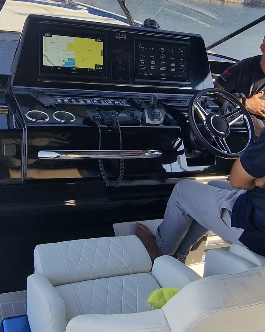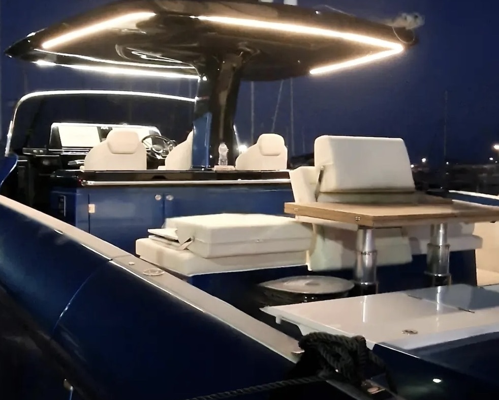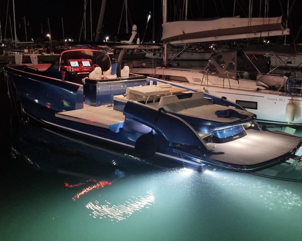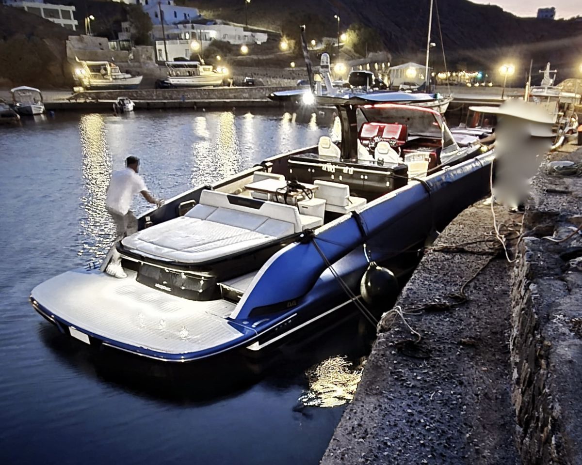 Water heater / Autotrim /water tank 200lt / fuel tank 1200lt / Garmin interface 2X 18″ screens / Garmin radar / Garmin depth sensor / garmin active captain/ Besenzzoni hydraulic passarela 3 positions with steps / inverter Α/C / Watermaker 220lt/hr / Generator Fischer Panda / IPS-GPS Positioning and position keeping system for easy docking IPS/ Joystick / Flir Camera / Side folding flap doors / surround sound + subwoofwer / Epsilon type Anchor + Anchor control panel in cockpit / White Sunbrella outdoor fabrics / mini fridge / mini ice maker / sink / cooking panel / lithium batteries new Gen / Bluetooth.
